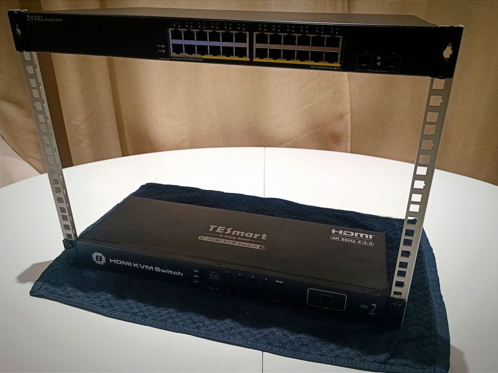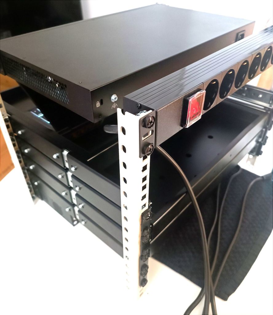 To assemble the rack, I opted for four 8U rack rails. This choice offers a convenient and extremely lightweight solution for rack configuration. The rack rails, along with the components affixed to them, inherently form the rack’s structure in a consistent manner, eliminating the need for a traditional rack cabinet.