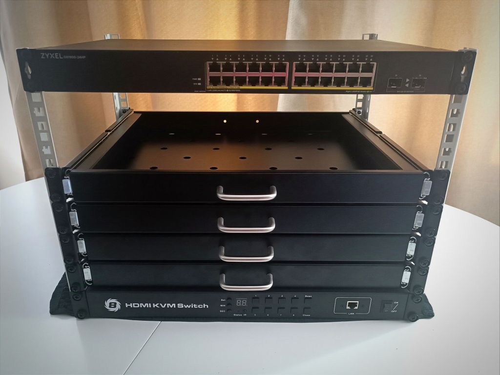 In this post, I’d like to showcase the visual outcome. The assembly of the rack cabinet itself. However, it’s important to note that this is merely a cosmetic solution for now. The more intriguing aspects, such as automating remote power management, network booting, and KVM functionality, will be explored in future updates.