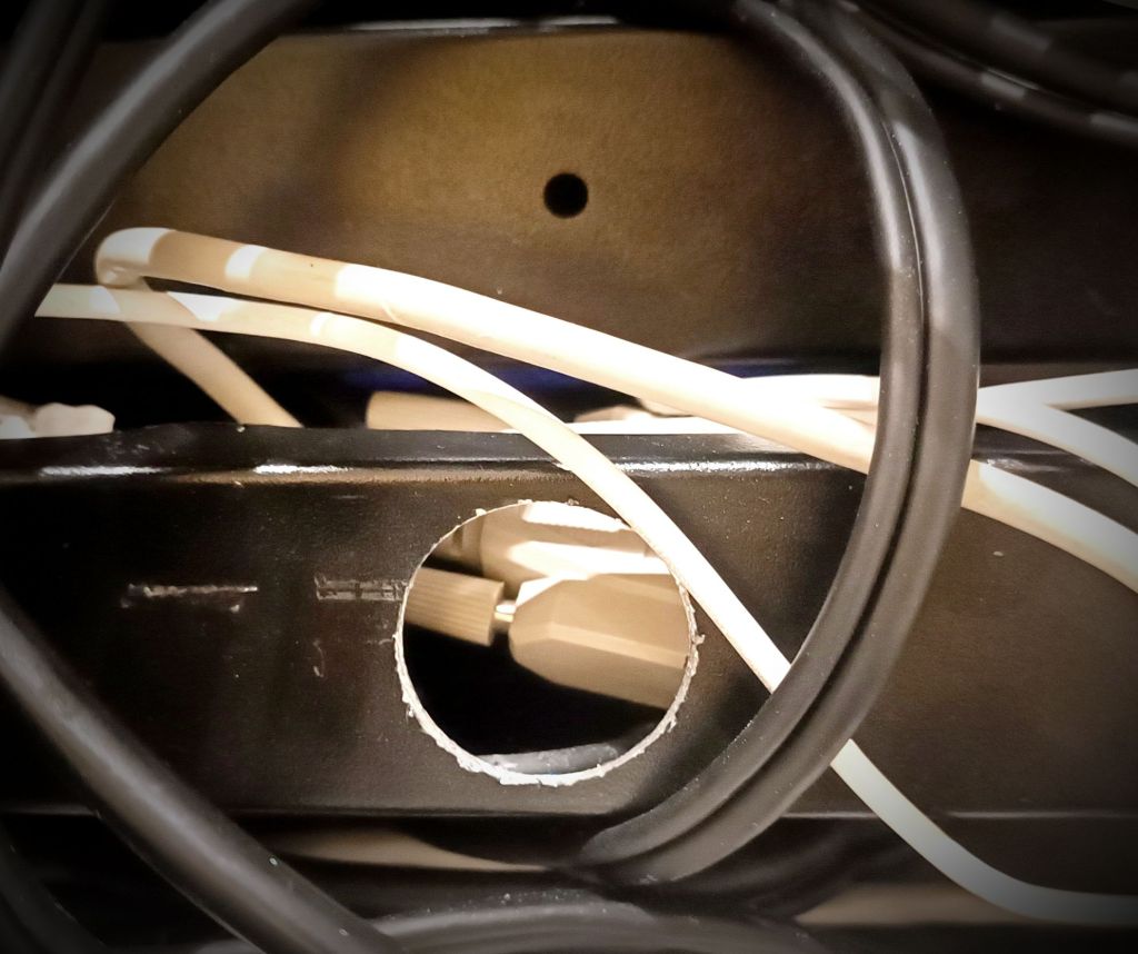- The second problem is that the tray is completely closed off at the back. This makes it impossible to route cables through the rear. To address this, I had to drill holes using a metal hole saw. While the final result looks good, it was an extra step I hadn’t anticipated having to take.