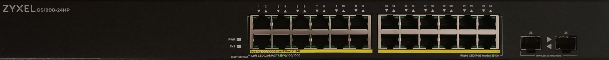 This is how the Zyxel Switch PoE Gigabit GS1900-24HP ethernet switch looks like. The package arrived well-protected, with all necessary rack-mounting hardware included.
