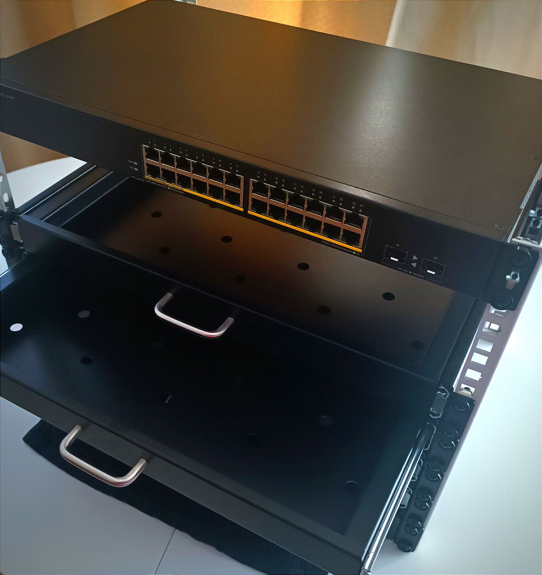 To assemble the rack, I opted for four 8U rack rails. This choice offers a convenient and extremely lightweight solution for rack configuration. The rack rails, along with the components affixed to them, inherently form the rack’s structure in a consistent manner, eliminating the need for a traditional rack cabinet.